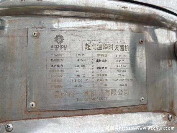 出售15吨超高温巴氏杀菌机可试机
