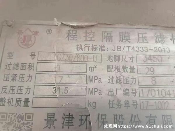 30平方程控隔膜压滤机,带自动清洗,成色很新,需要的老板联系!