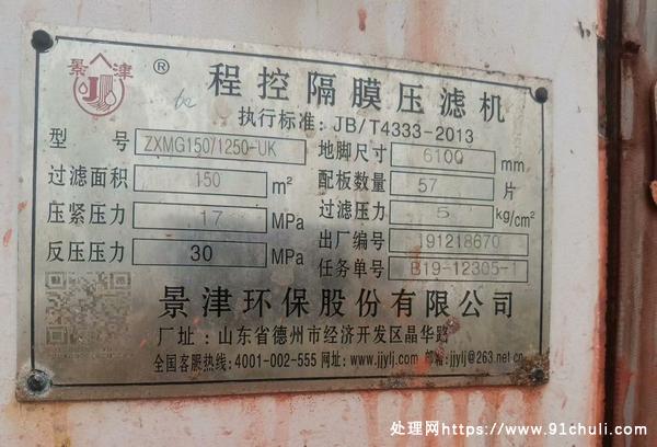 景津程控隔膜压滤机150平方两台250平方一台95成新