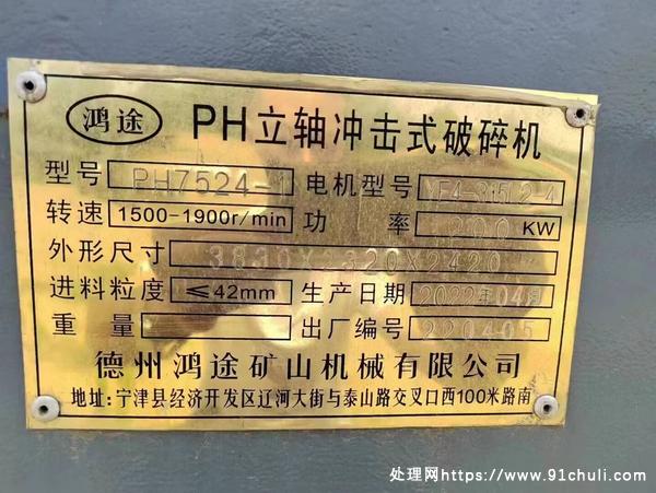 7524型冲击式破碎机,200千瓦电机,2022年新机,用了一星期 。