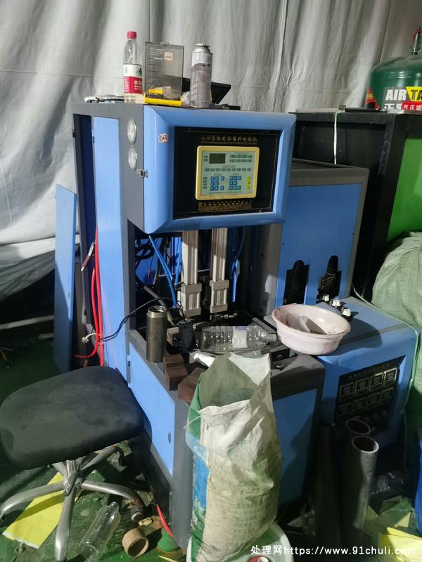 半自动吹瓶机,吹瓶主机,烤箱21千瓦,1.2的空压机,还有储气罐,主机瓶口带冷却,加一个1.5匹的冷水机,不带模具,模具有4个,玻璃水瓶方的1.4升28口,圆瓶玻璃水1.6升38口,圆瓶玻璃水1.3升38口,还有一个0.5升的小瓶子28口,模具2200元一个,都是一出二的,基本全新没用几次。