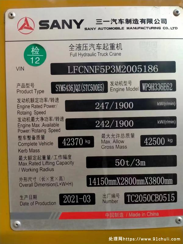 2021年三一50吨吊车,纯自家用的,900多小时,从厂家开回来的,价格不高,自己用非常合适,认赔30万转让,到家机油都不用换,直接就干活去,需要的联系!