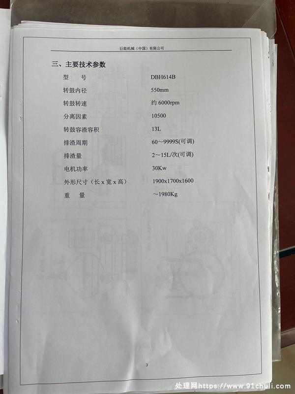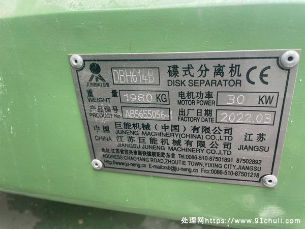 DBH614B碟式分离机,江苏巨能2022年出产,全新未用!