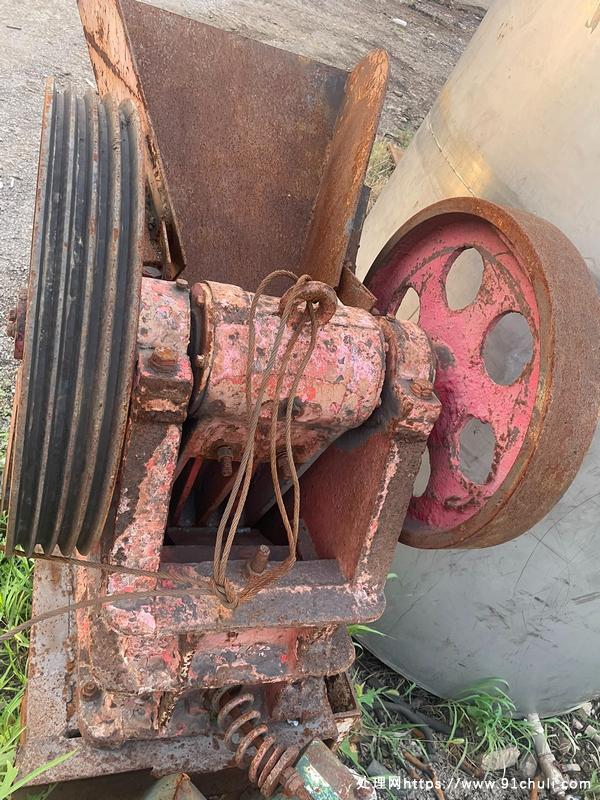 小型鄂式破碎机,8成新,机器重约555公斤,进料口尺寸27×14厘米,锰钢牙板很好,转的很好,没有电机了,实物如图所示,具体请参照图片,闲置了,懂货的请联系。