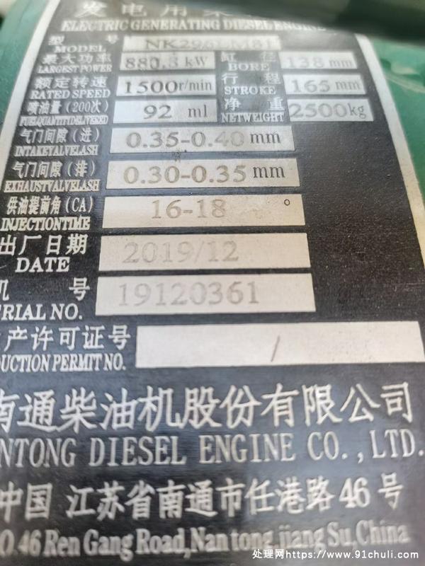 800千瓦发电机,南通动力,用了不到400小时。