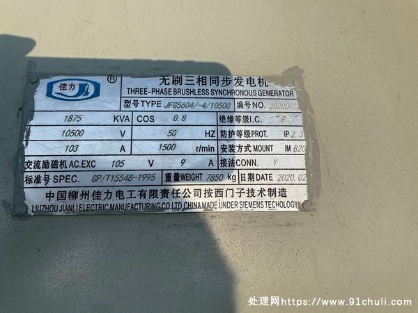 出售曼海姆1500KW发电机组,配高压十千伏电机。