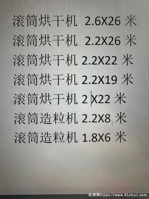 公司新近一批复合肥生产设备、现有2X22米、2.2X22米、2.2X26米、2.6X26米、2.2X10米滚筒造粒机、1.8X8米滚筒造粒机、1.5X5米滚筒包膜机、各种规格复合肥粉碎机、卧式粉碎机、双轴打散混合机等。
