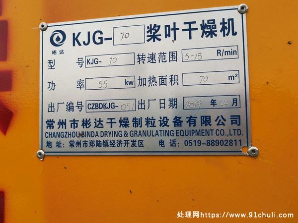 70平方空心桨叶干燥机316L材质95新安装即可用