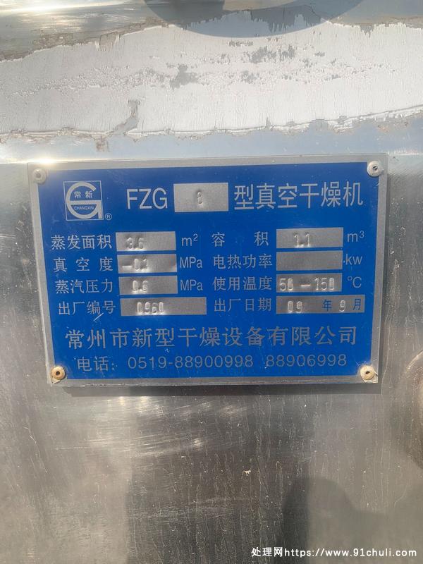 出售三台单门真空干燥机,使用温度50-150摄氏度,容积一立方,蒸发面积3.6立方。