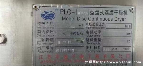 新定144平方全不锈钢盘式干燥机一套,数字程控系统,手续资料齐全。