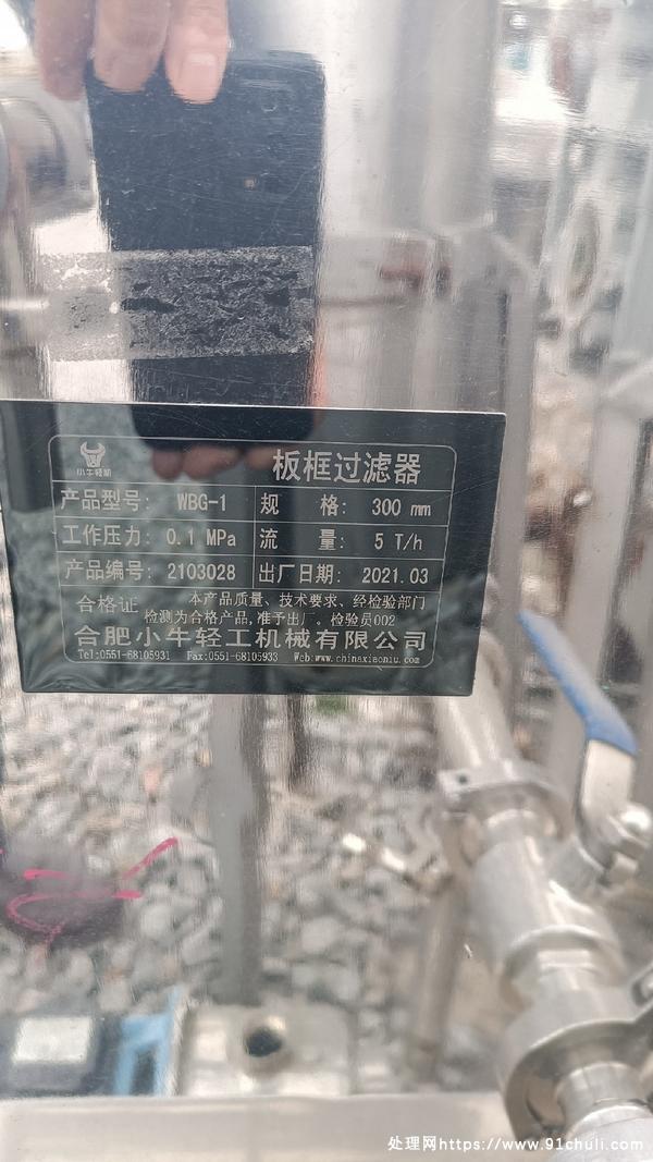 板框式过滤器,每小时五吨,21年购买,全新未用!因产量太小,不能供应产量,现着急甩卖!