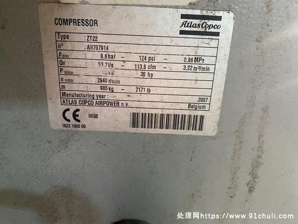 阿特拉斯ZT22-8.6无油空压机,仅使用6000小时,可租可售,