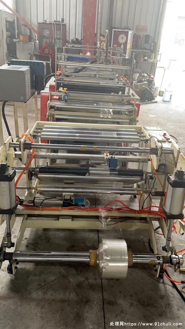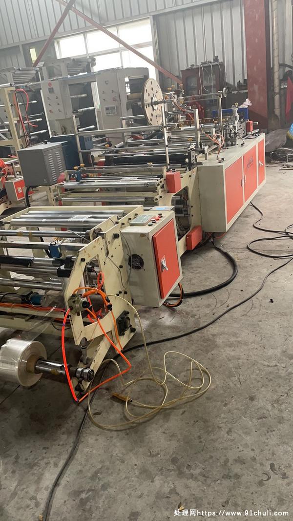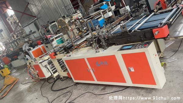 两台江阴北国快递袋喷胶折边一体制袋机高效生产