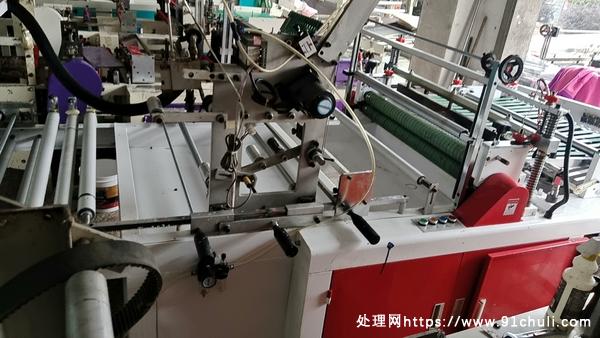 两台江阴北国快递袋喷胶折边一体制袋机高效生产