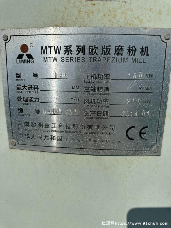 黎明重工欧版1750型雷蒙磨粉机,主机电机160千瓦,风机电机200千瓦,精品机成色好价格不高!