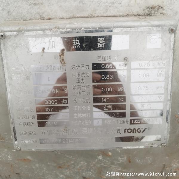 低价出售3台120平方列管冷凝器,316L高压耐高温