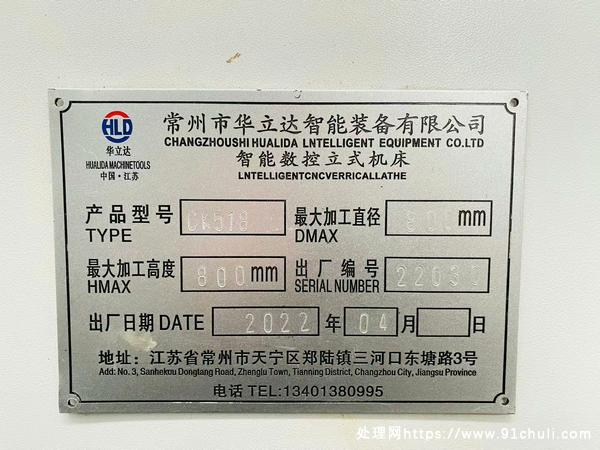 华立达CK518数控立车,回转直径1000,卡盘直径∅700,车削直径∅800,加工高度800,22kw主电机+减速齿轮箱力大无比,最新款广数980TDi系统,Z轴刚性方滑枕,带链式排屑机,2022年产准新机二手价。