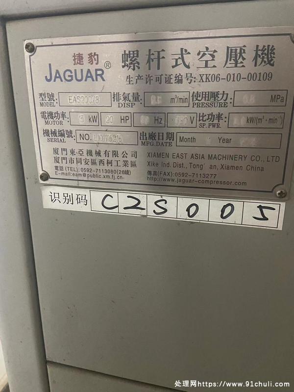 正宗捷豹15kw螺杆空压机三件套,机况完美,声音静,无拆无修,一立方捷豹储气罐,配20hp干燥机。