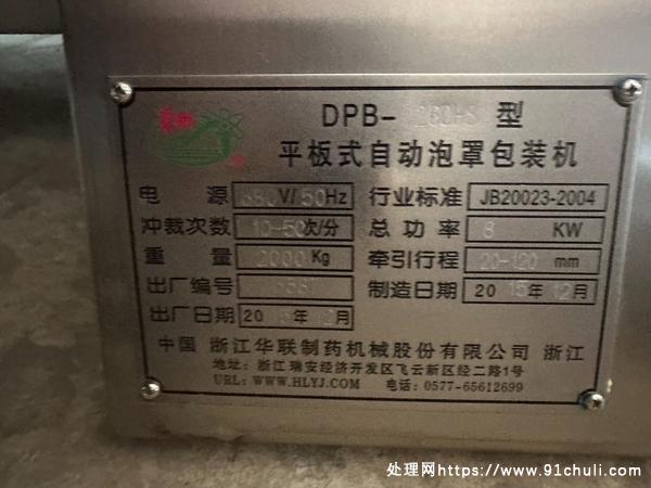 浙江华联药机,DPB-260HS型铝塑泡罩包装机,2015年设备,成色美丽,试机正常,带光标跟踪,有需要联系我。