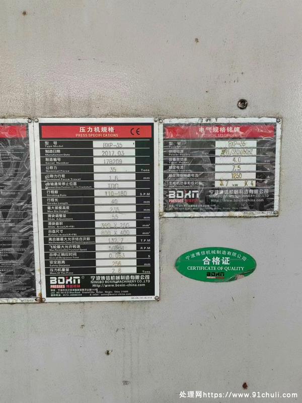 出售一台,35T博信气动冲床,17年机器,有要的联系。