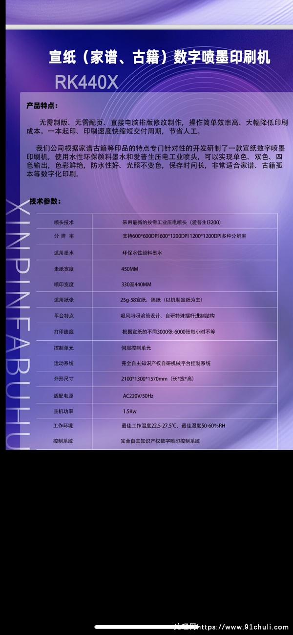家谱喷墨印刷机四色高速6000张A3/小时