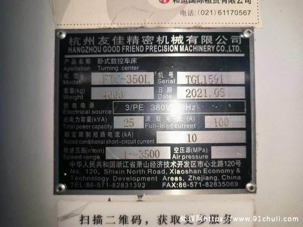 2021年台湾友佳FTC-350L精密数控车床,10寸台湾亿川卡盘,发那科OI-TF PLUS 1包系统,阿尔法电机驱动,8工位德国肖特刀塔,两轴日本THK线轨,带尾座带排屑机!