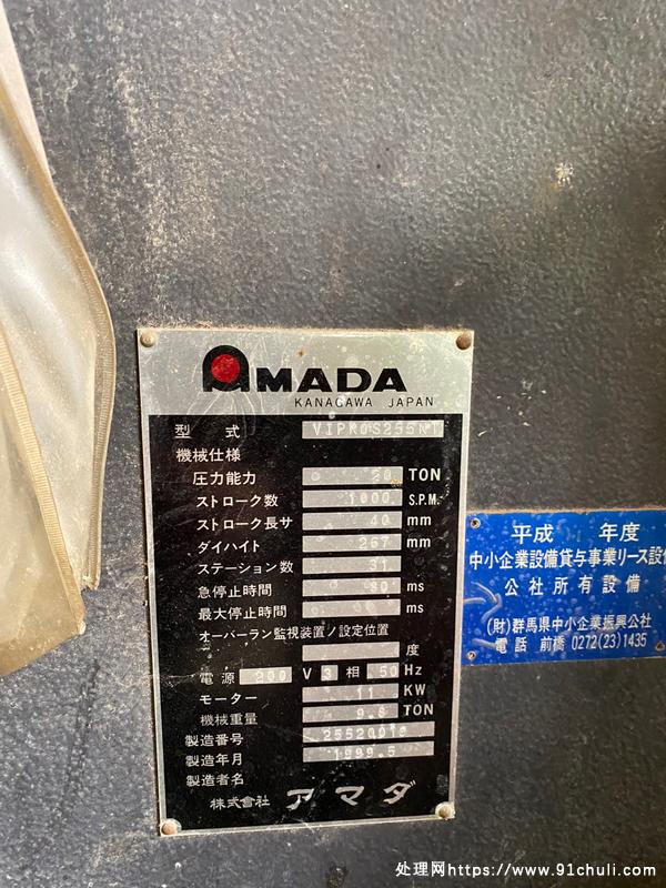 AMADA数控冲床,型号vipros255NT,加工能力20吨,加工尺寸1250×2500,工厂在位使用中。