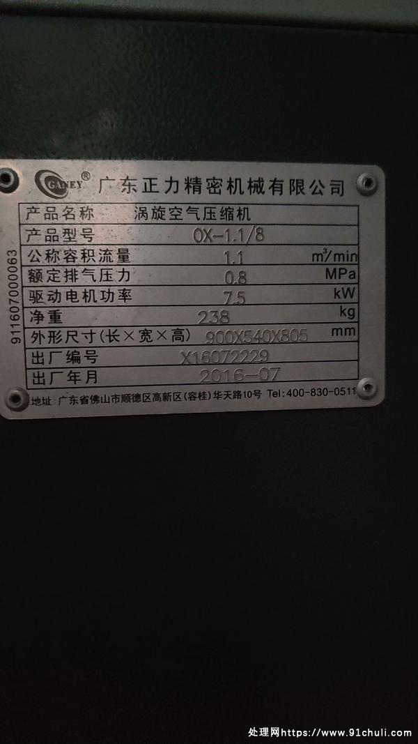 广东正力精工涡旋空压机,7.5千瓦,1.2立方,买来没怎么用过的,成色不错,需要的联系!