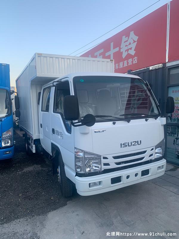 庆铃五十铃双排厢式货车,最新五十铃4KK发动机,排量2.5,马力132匹,700轮胎,油刹,车厢3245/1850/1810。