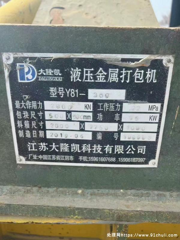 大隆凯280吨金属压块机,打包机,料箱2×1.75米,包块50,双主缸全自动,从口罩睡到现在。