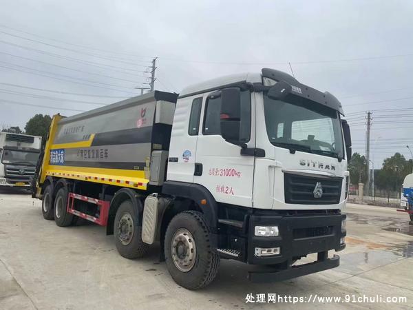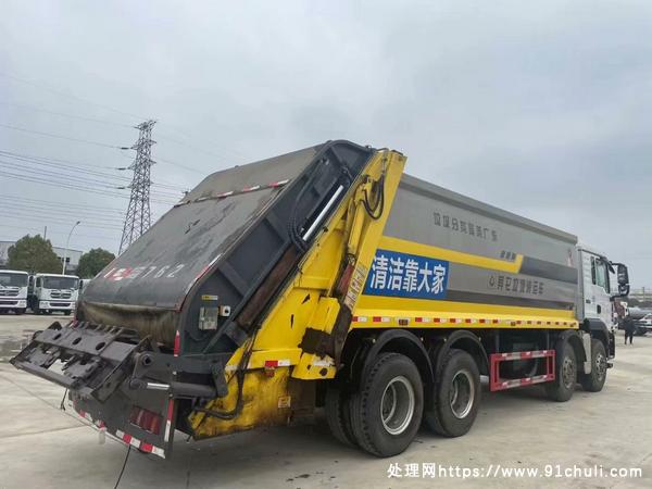 巨无霸压缩垃圾车来了!21年12月份出厂重汽汕德卡前四后八压缩垃圾车,整车配备潍柴350马力发动机,上装箱体容积20方,滑板油缸外置,超大压缩比,上装配备遥控器,标配双联泵,大流量多路阀,双加大污水箱,尾部240L翻桶架。
