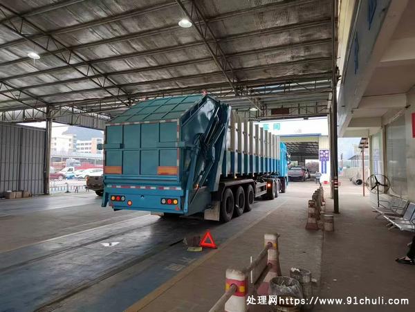 大量45立方后装半挂压缩式垃圾车!整备质量17吨,额定载质量24.2吨。可牵引头取力,也可外接380V交流电定点收集压缩,堪称大型可移动式压缩站。适合远途转运生活垃圾到焚烧厂填埋场,尤其是需要长时间排队的地区。一车抵十车!