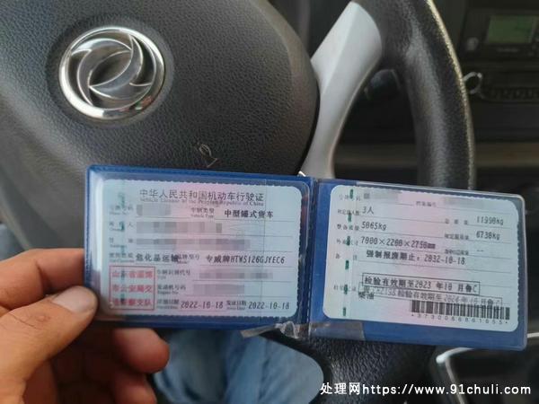 山东淄博户8吨油罐车,22年10月份,东风华神DV3,8.5方加油车,行驶2.3万公里,带全年商业险。