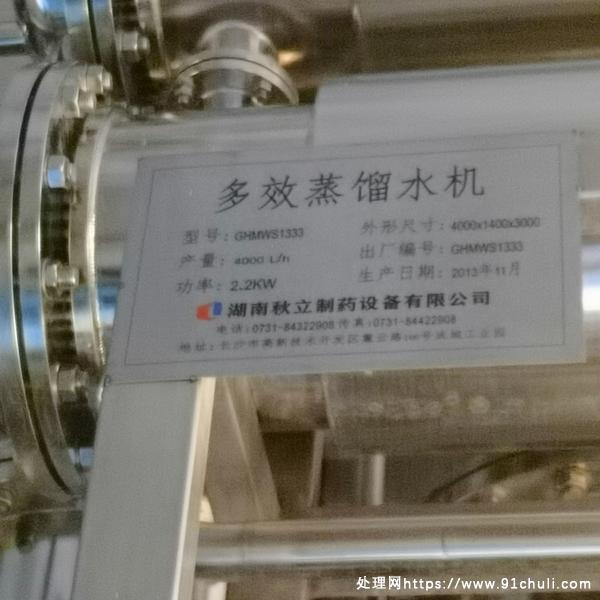 多效蒸馏水机,每小时产4吨,湖南秋立制药设备生产。