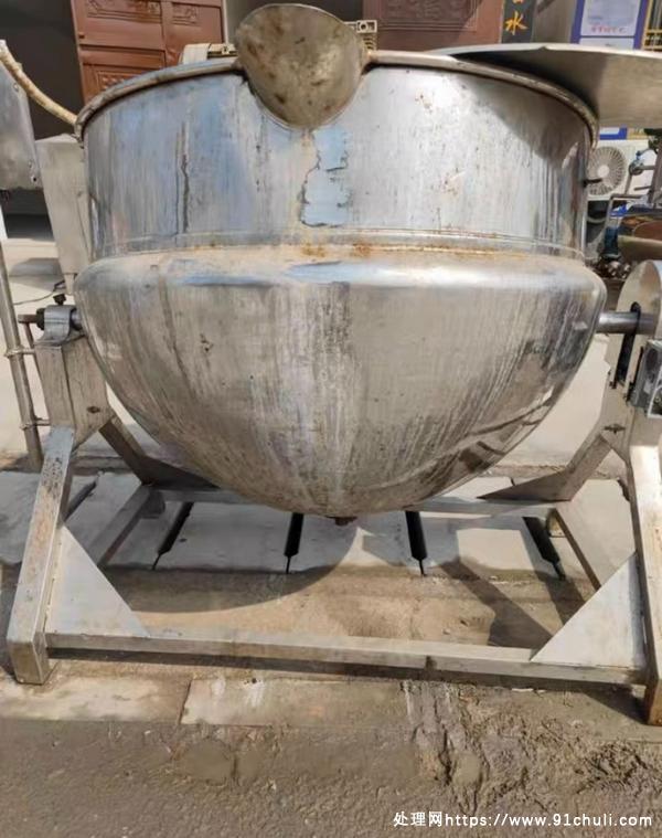 处理一台食品厂800升蒸汽夹层锅,带搅拌,倾斜出料,蒸汽加热,大容量800升,低价处理。
