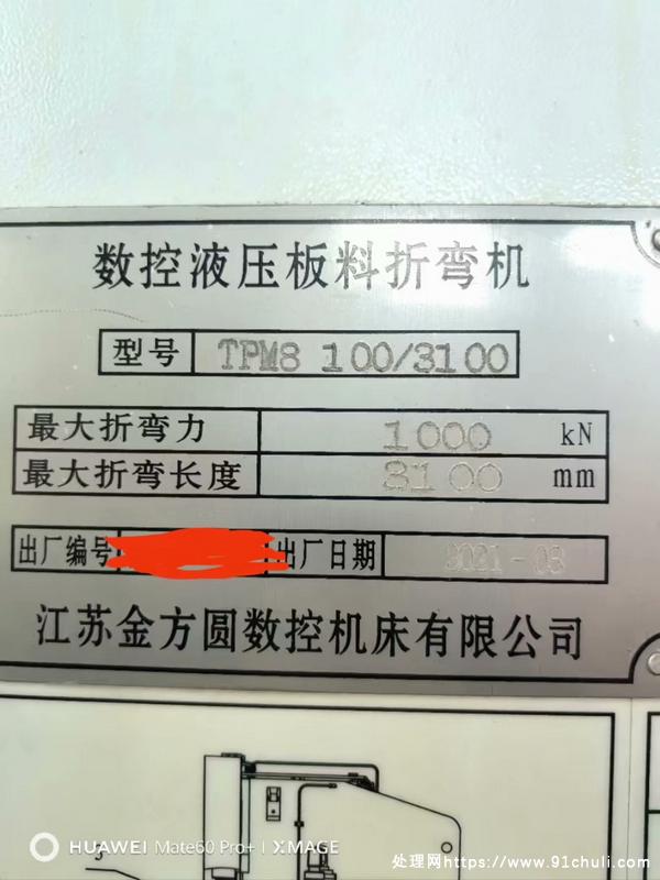 金方圆100/3100电液折弯机,DA-53T操作系统,4+1轴机械补偿,主电机伺服电机,2021年,原版原漆原标牌,沧州青县在位使用。